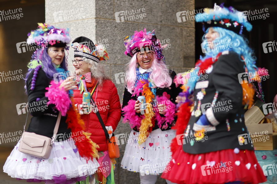 Um Punkt 11:11 Uhr an Weiberfastnacht (24.02.2022) beginnt in Köln trotz Krieg in der Ukraine der Straßenkarneval. Auch die Kölner Altstadt ist voll mit Feiernden. Die Stadt Köln hat die gesamte Stadt zu einer Brauchtumszone erklärt, in der für die feiernden bestimmte Corona-Regeln gelten. Köln, 24.02.2022