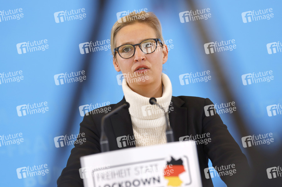 Politik, Pressekonferenz, PK, Reichstag, Sitzung, Regierung, Deutscher Bundestag, Demokratie, Abgeordnete, Parlament, Parlamentsgebäude, Bundesregierung, Volksvertreter, MdB, Mitglied des Bundestages, Politikerin, Co-Vorsitzende der AfD-Bundestagsfraktion, Oppositionsführerin im Bundestag