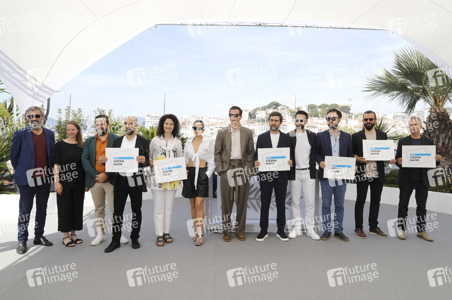 Nizam Namidar, Viola Fügen, Yorgos Tsourgiannis, Erol Babaoglu, Anita Juka, Selin Yeninci, Selahattin Pasali, Emin Alper, Ekin Koc, Erdem Senocak, Nadir Operli und Laurent Lavole beim Photocall zum Kinofilm 'Burning Days / Kurak Günler' auf dem Festival de Cannes 2022 / 75. Internationale Filmfestspiele von Cannes am Palais des Festivals. Cannes, 24.05.2022