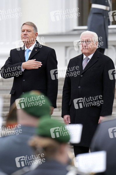 Klaus Iohannis und Frank-Walter Steinmeier beim Empfang des Präsidenten von Rumänien mit militärischen Ehren und zum gemeinsamen Gespräch im Schloss Bellevue. Berlin, 16.11.2024