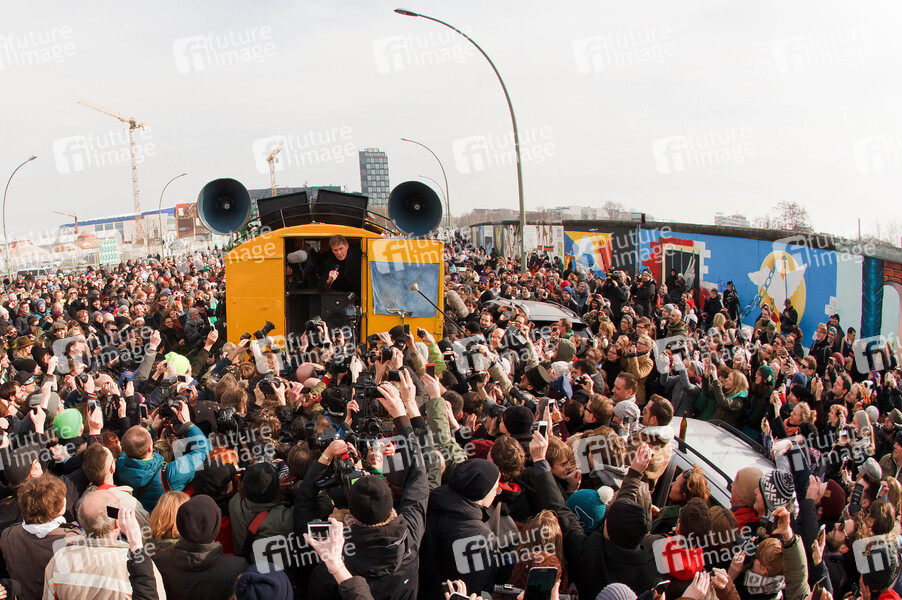 David Hasselhoff protestiert an der East Side Gallery gegen Abbau der Berliner Mauer. Berlin, 17.03.2013