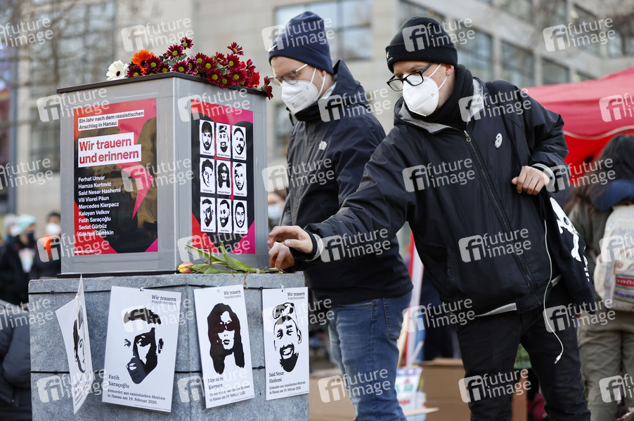 Gedenkveranstaltung zum ersten Jahrestag des rassistischen Anschlags in Hanau am Oranienplatz. Vor einem Jahr tötete ein Rechtsextremist in Hanau zehn Menschen und sich selbst. Berlin, 19.02.2021