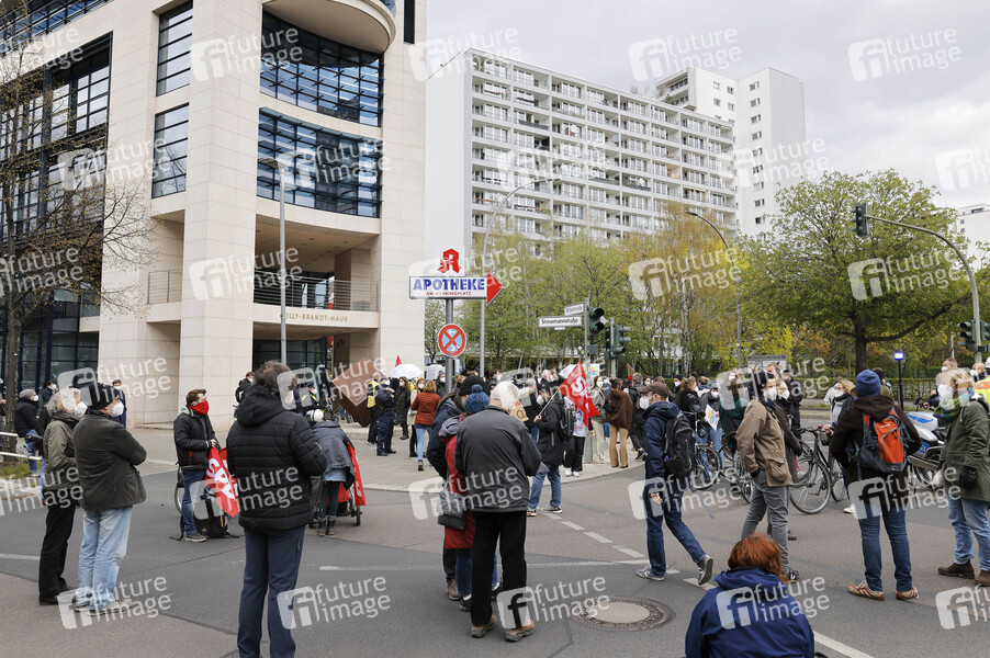 Protest, Demo, Demonstration, Corona-Maßnahmen-Kritiker, Corona-Hygieneregeln, Distanz, Mund-Nasen-Schutz, Protestierende, Demonstranten, Polizei, Polizisten, Gegner der Corona-Maßnahmen, Infektionsschutzgesetz, Corona-Notbremse, Eindämmung der dritten Pandemiewelle, Coronaleugner, Teilnehmer, Corona-Regeln, Pandemie, Corona-Demo, Coronademo, Querdenker, Querdenken, Gegendemonstranten, Corona-Leugner, Demo gegen Lockdown