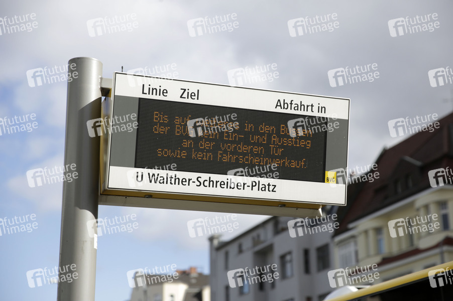 Eine Anzeigetafel der BVG. Die meisten Berliner halten sich offensichtlich an die Empfehlungen und Maßnahmen der Bundesregierung zur Bekämpfung der Corona-Epidemie. Berlin, 21.03.2020