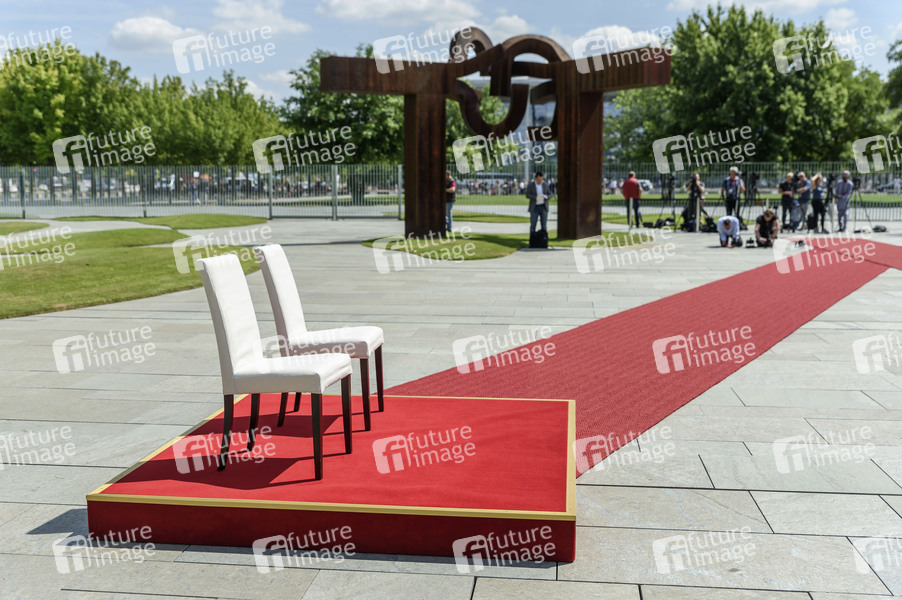 Beim Empfang mit militärischen Ehren für die dänische Ministerpräsidenten stehen Stühle im Hof des Bundeskanzleramts bereit. Berlin, 11.07.2017