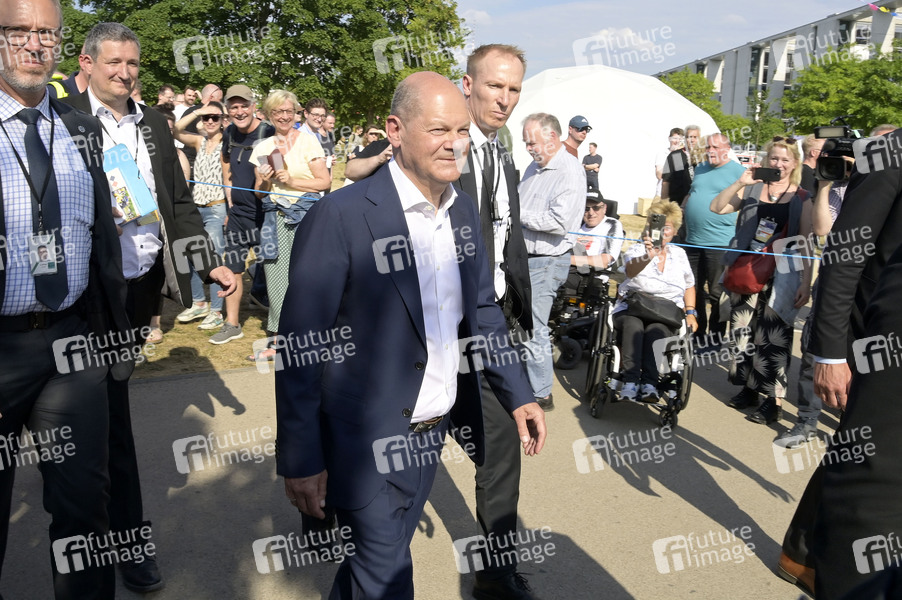 Olaf Scholz auf dem Demokratiefest zu 75 Jahren Grundgesetz zwischen Kanzleramt und den Deutschen Bundestag. Berlin, 24.05.2024