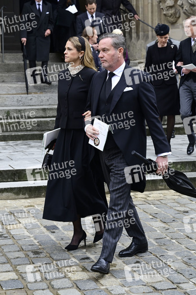 Prinzessin Madeleine von Schweden mit Ehemann Christopher O'Neill bei der Trauerfeier für Andreas Prinz von Sachsen-Coburg und Gotha in der Morizkirche. Coburg, 24.04.2025