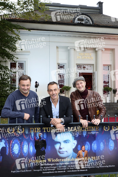 Axel Holst, Benoit Soles und Raphael Dwinger bei der Premiere der Wiederaufnahme des Theaterstücks 'Die Turing-Maschine' im Theater im Zimmer. Hamburg, 19.09.2021