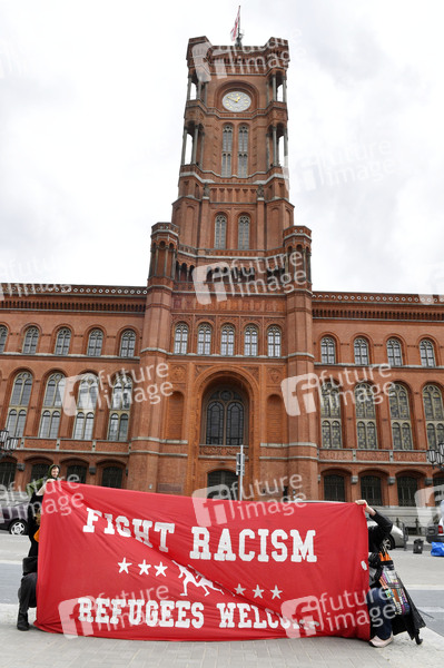 Demo, Demonstration, Demonstranten, Politik, Protest, Aktion, Evakuierung, Räumung, Flüchtlingslager, Menschenrechte, Demo, Rotes Rathaus, Initiative Seebrücke, Flüchtlingspolitik, Asyldebatte, Asylpolitik, Einwanderung, Zuwanderung, Asylrecht, Asylgesetz