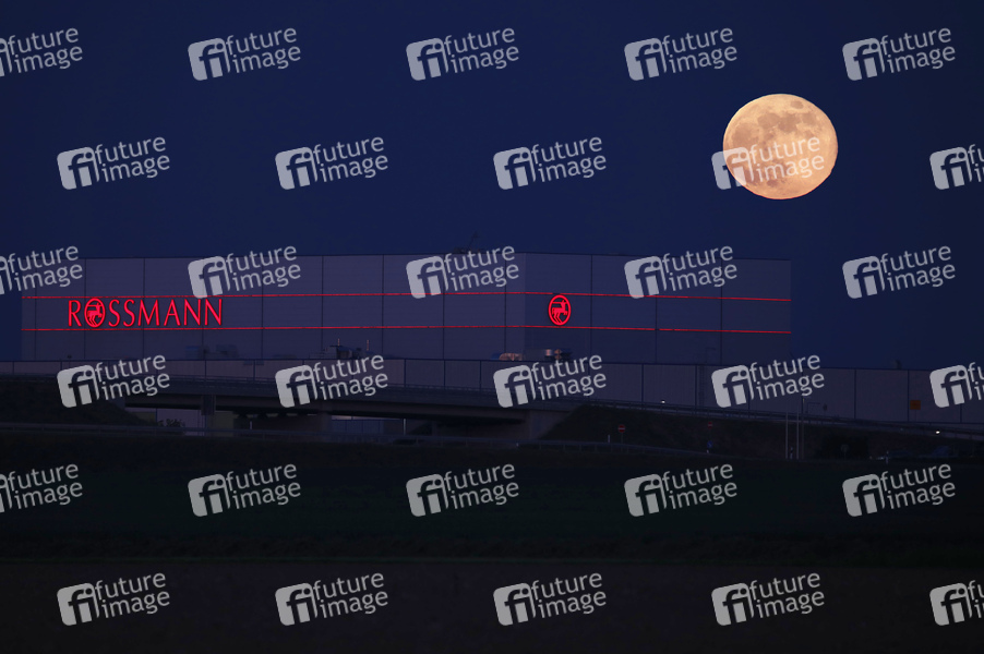 Vollmond über dem Zentrallager von Rossmann. Landsberg, 07.05.2020