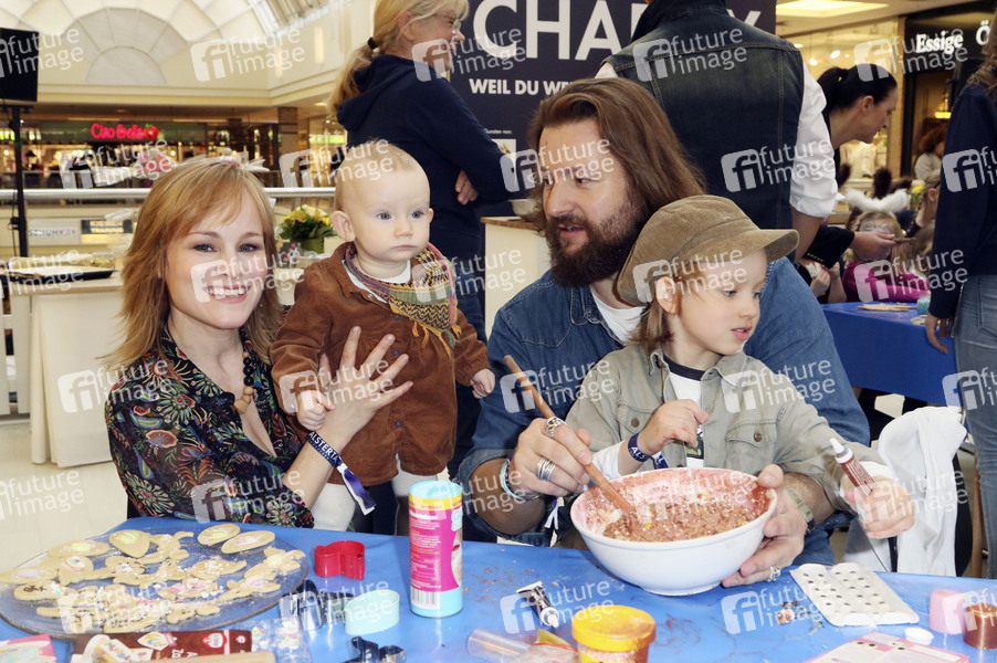 Dorkas Kiefer mit Ehemann Sascha Alexander Hauck, Sohn Sam und Tochter Emmi beim Promi-Osterbacken zugunsten der Tribute to Bambi Stiftung im Alstertal-Einkaufszentrum. Hamburg, 28.03.2019