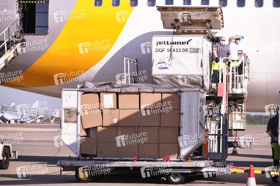 Volkswagen empfängt Luftfracht mit 5 Million Schutzmasken und medizinische Hilfsmaterialien aus China auf dem Hannover Airport. Hannover, 26.04.2020