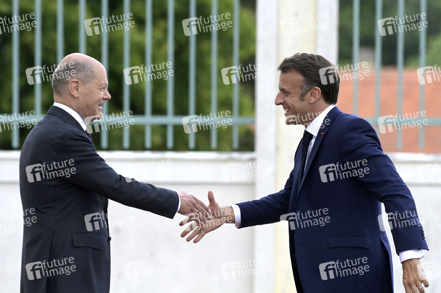 Olaf Scholz und Emmanuel Macron beim Treffen des Deutsch-Französischen Ministerrats im Gästehaus der Bundesregierung Schloss Meseberg. Meseberg, 28.05.2024