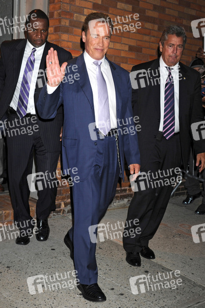 Arnold Schwarzenegger nach seinem Besuch in der Comedy Central Show 'The Daily Show with Jon Stewart' , New York