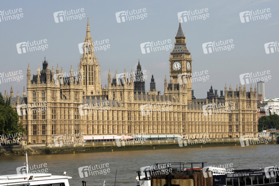 UNESCO Weltkulturerbe, Gotik Bau in dem das aus dem House of Commons und dem House of Lords bestehende britische Parlament tagt, Clock Tower Big Ben, Central Tower, Themse