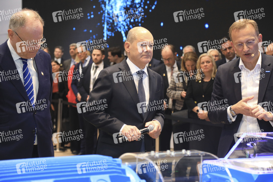 Deutsche Messe AG, Hannover Messe Industrie, Weltleitmesse der Industrie, Industriemesse, Industrieschau, Automatisierung, IT-Sicherheit, KI, Technologie, Wirtschaft, Ausstellung, Fair, Messe, Eröffnung, Opening, Leitmesse, Synergie und Kooperation, Wasserstoff & Brennstoffzellen, CO2-neutrale Produktion, Energizing a Sustainable Industry, Künstliche Intelligenz, Partnerland Kanada, Politiker, Bundeskanzler, Ministerpräsident von Niedersachsen