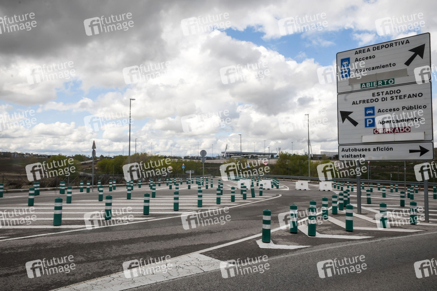 Leere Straßen am Tag 17, nachdem die spanische Regierung den Ausnahmezustand wegen des Coronavirus COVID-19 erklärt hat. Die Bevölkerung steht vorerst bis zum 11. April Tage zu Hause unter Quarantäne. Die spanische Polizei und Armee überprüfen Menschen, die durch die Straßen gehen. Erlaubt sind Gänge in Krankenhaus, in Supermärkte, Kioske und Apotheken, sowie das Ausführen von Haustieren und der Weg zur Arbeit. Madrid, 01.04.2020