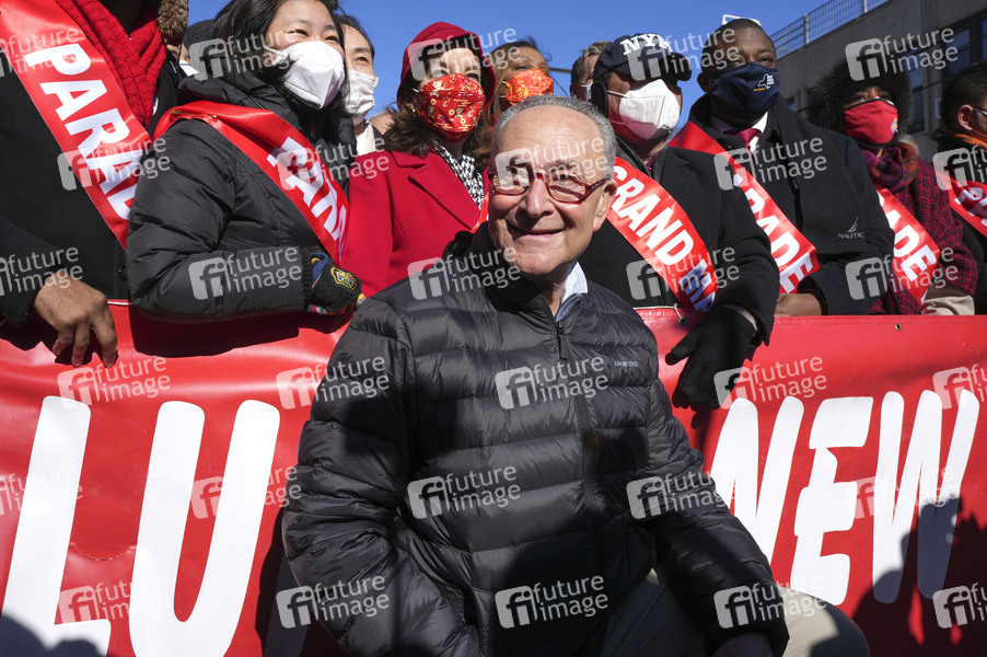 Chuck Schumer bei der Lunar New Year Celebration in Flushing. 55 Prozent der Einwohner Flushings sind ostasiatischer Herkunft. Mond-Neujahr ist der Jahresbeginn in einigen traditionellen Kalendersystemen Asiens. Neujahr wird dort zu einer bestimmten Mondphase gefeiert, meist am Tag des Neumondes. New York, 05.02.2022