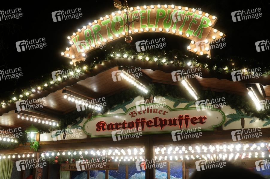 Kartoffelpuffer auf dem City-Weihnachtsmarkt an der Gedächtniskirche auf dem Breitscheidplatz. Berlin, 16.12.2024