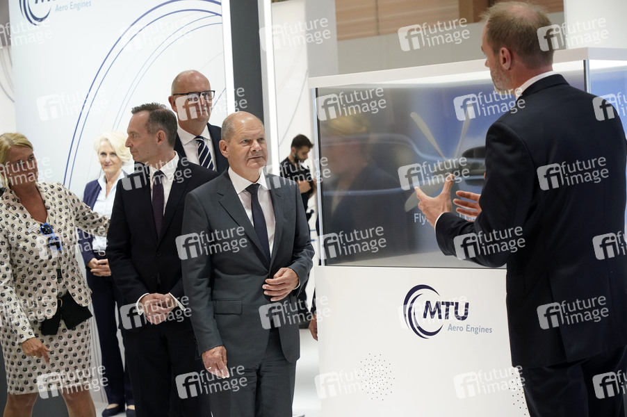 Olaf Scholz und Lars Wagner bei der ILA-Eröffnung mit anschließendem Rundgang auf dem ILA-Gelände am Flughafen BER Berlin-Brandenburg. Berlin, 22.06.2022