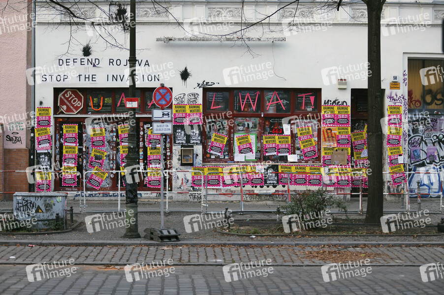 Gegen 8.30 Uhr wurde die Kiezkneipe 'Meuterei' in Kreuzberg von der Polizei geräumt. Linke Gruppen haben für Donnerstag fünf Demos, davon drei mit dem Zielort vor der besetzten Kneipe, angekündigt. Seit Mittwochnachmittag hat die Polizei deshalb eine Sperrzone um die Kneipe gezogen. 1100 Einsatzkräfte sicherten die Räumung der Kiezkneipe ab. Berlin, 25.03.2021