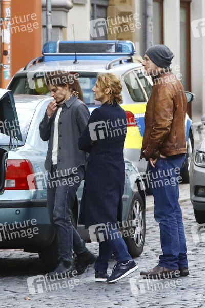 Yvonne Catterfeld, Christina Große und Götz Schubert bei den Dreharbeiten zum 11. Teil der ARD Krimireihe 'Wolfsland' am Set in der Altstadt. Görlitz, 27.03.2021