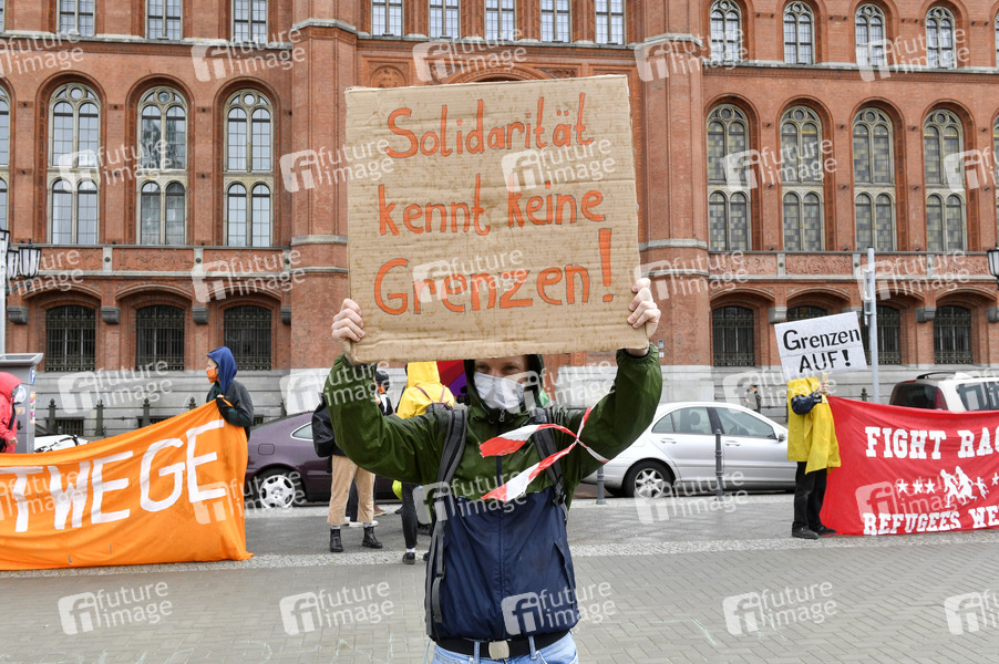 Demonstration und Kundgebung für eine Evakuierung der Flüchtlingslager in Griechenland vor dem Roten Rathaus. Berlin, 24.05.2020