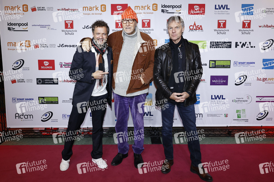 Nicolai Tegeler, Reiner Schöne und Hansjörg Thurn bei der Eröffnung vom 11. Eat My Shorts - Hagener Kurzfilmfestival 2024 in der Stadthalle. Hagen, 16.11.2024