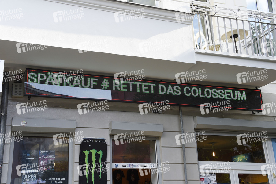 Protestaktion der Mitarbeiter gegen die geplante Schließung des Kinos Colosseum. Mit Aktionen wie dieser wollen die Mitarbeiter und Anwohner die Schließung verhindern. Ihrer Meinung nach wurde das Kino gezielt in den Ruin geführt. Die Betreiberfirma des Kinos hatte am 20. Mai Insolvenz angemeldet, begründet wurde das mit den Folgen der Coronakrise: Kinoverbot, ausbleibende Gäste, keine Einnahmen. Nun zeigt sich, dass wirtschaftliche Gründe infolge der ausbleibenden Einnahmen während der Corona-Krise nicht oder nur teilweise für die Schließung des geschichtsträchtigen Hauses verantwortlich sind. Finanzielle Corona-Unternehmenshilfen wurden nicht beantragt. Vielmehr haben sich Geschäftsführer Sammy Brauner und die Erbengemeinschaft des Nachlasses seines in 2019 verstorbenen Vaters Artur Brauner dazu entschlossen, das denkmalgeschützte Haus künftig nicht mehr als Kino fortzuführen. Vieles deutet darauf hin, dass Geschäftsführer Sammy Brauner und die Erbengemeinschaft Brauner andere, lukrativere Pläne für die Immobilie an dieser zentralen Stelle im Stadtteil Prenzlauer Berg verfolgen. Laut www.gleimviertel.de sei bereits im September 2019 ein Bauvorbescheid für das Grundstück Schönhauser Allee 123 beantragt worden. Inhalt des Bauvorhabens: Neubau und Überbauung des Grundstücks 'Colosseum' mit Büronutzung im Umfang von 15.960 m2 Gewerbefläche. Dieser Antrag sei positiv beschieden worden. Berlin, 21.06.2020