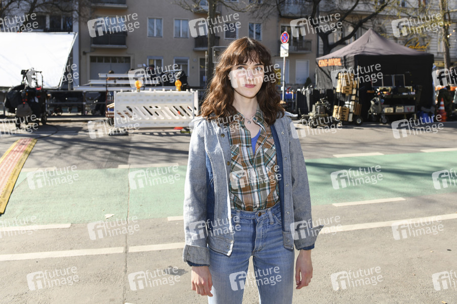 Marie Louise Albertine Becker beim Fototermin am Set der ZDF Serie 'Ku'damm 77' in der Richard-Wagner-Straße. Berlin, 28.03.2025