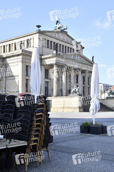 Das Konzerthaus am Gendarmenmarkt. Nach zuletzt beschlossenen Schutzmaßnahmen gegen die Ausbreitung des Corona-Virus kommt das öffentliche Leben in Berlin nahezu zum Erliegen. Betroffen sind fast alle Sehenswürdigkeiten, Museen, Plätze, Strassen, Restaurants, Biergärten, Universitäten u.v.m. Berlin, 17.03.2020