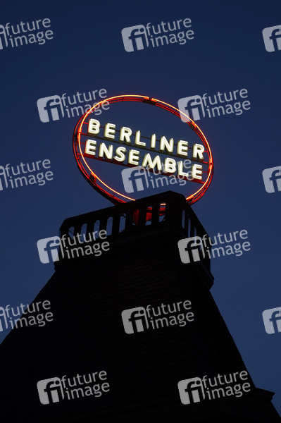 Das Logo auf dem Dach vom Theater Berliner Ensemble am Bertolt-Brecht-Platz. Berlin, 03.07.2020