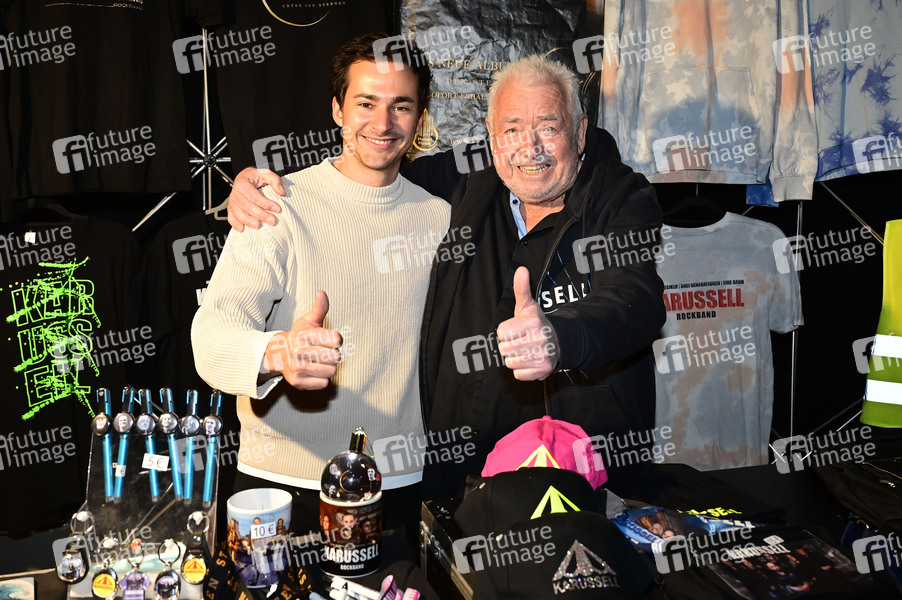 Florian Herbst mit Wolf-Rüdiger Raschke von Karussell bei einem Konzert der '50 Jahre Karussell'-Jubiläumstour' im L2 Club. Görlitz, 09.01.2026