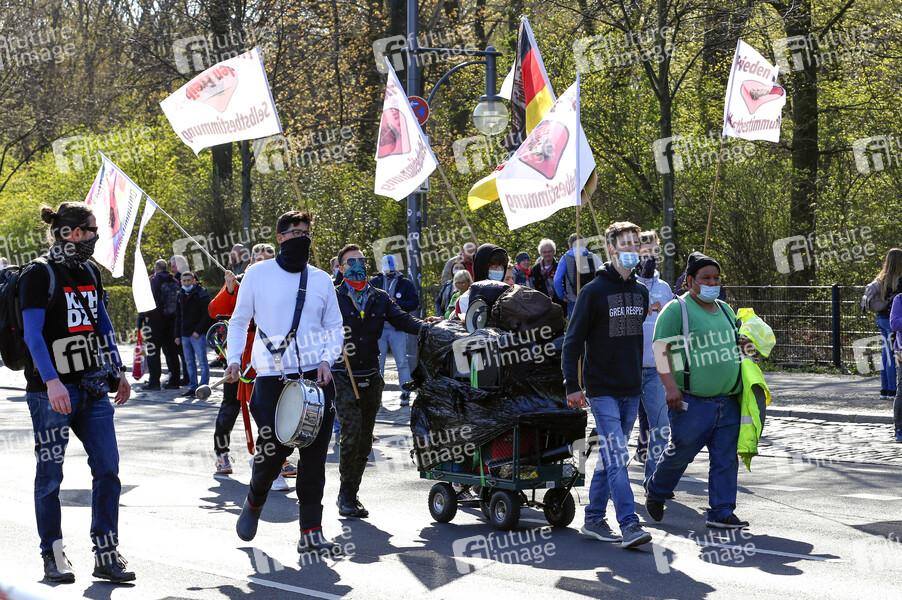 Tausende Demonstranten haben sich am Mittwoch auf der Straße des 17. Juni versammelt, um gegen die staatliche Corona-Politik zu protestieren. Wegen vielfacher Verstöße gegen die Corona-Auflagen wurde die Demo von der Polizei aufgelöst. Berlin, 21.04.2021