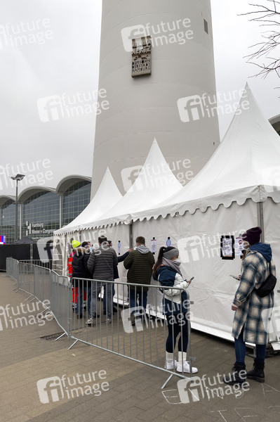Hygiene-Konzept bei der Protest-Veranstaltung Alarmstufe Rot - Alster in Flammen an den Messehallen am Heinrich-Hertz-Funkturm. Die Veranstalter wollen ein Zeichen setzen, dass mit vernünftigen Sicherheits- & Hygienemaßnahmen ( Testung, Anmeldung, App ) Öffnungen wie Gastronomie, Theater, Kinos, Fitnessstudios, entsprechende kulturelle Veranstaltungen etc. machbar sind. Hamburg, 20.03.2021