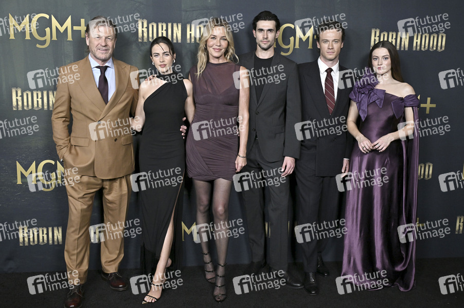 Sean Bean, Lydia Peckham, Connie Nielsen, Oscar Salem, Jack Patten und Lauren McQueen bei der Premiere der MGM+ Serie 'Robin Hood' im Culver Theater. Culver City, 22.10.2025