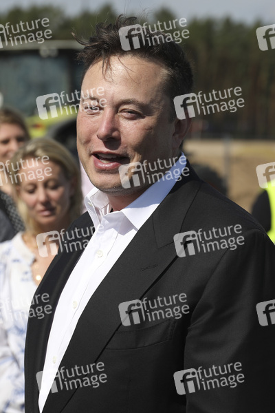 Elon Musk beim ersten Richtfest auf der Baustelle der Tesla Gigafactory Berlin-Brandenburg. Grünheide, 03.09.2020