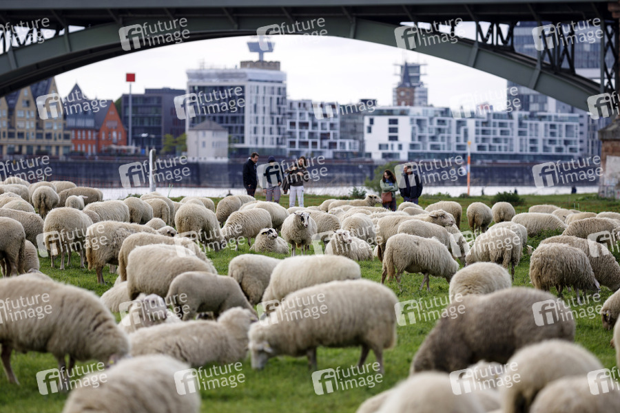 Als Herdenimmunität bezeichnet in der Epidemiologie eine indirekte Form des Schutzes vor einer ansteckenden Krankheit wie Covid-19, wenn ein hoher Prozentsatz einer Population schon immun geworden ist - im Bild eine Schafherde auf den Poller Wiesen. Köln, 01.05.2020