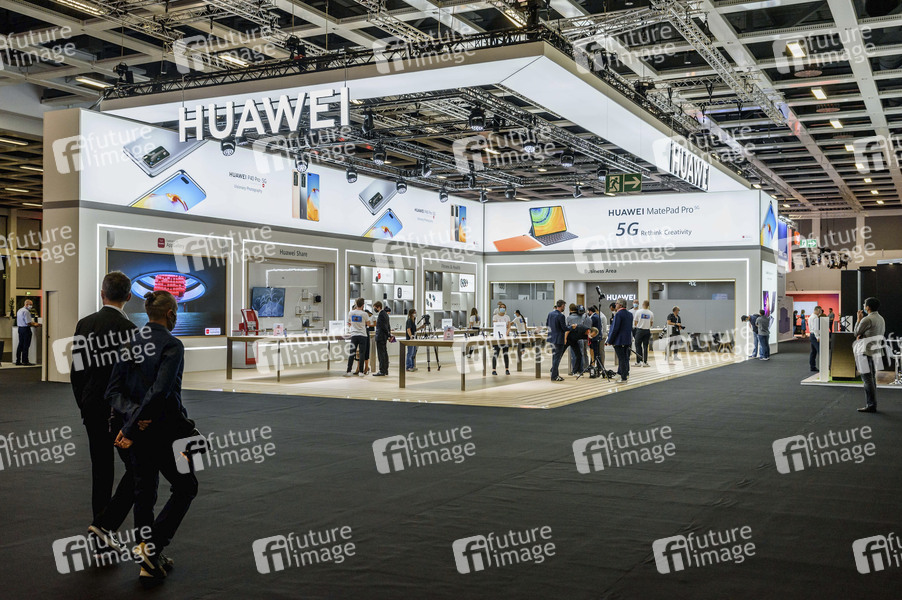 Messestand von Huawei - Eröffnung der Internationalen Funkausstellung 2020 unter dem Motto 'IFA 2020 Special Edition: Tech-Branche meldet sich zurück'. Es ist die erste Messe unter Corona-Bedingungen, die zum Teil online stattfindet. Es gibt nur etwa 250 Aussteller in den Messehallen. Die Messe ist nur für Fachpublikum unter strengen Hygienauflagen zugänglich.. Berlin, 03.09.2020