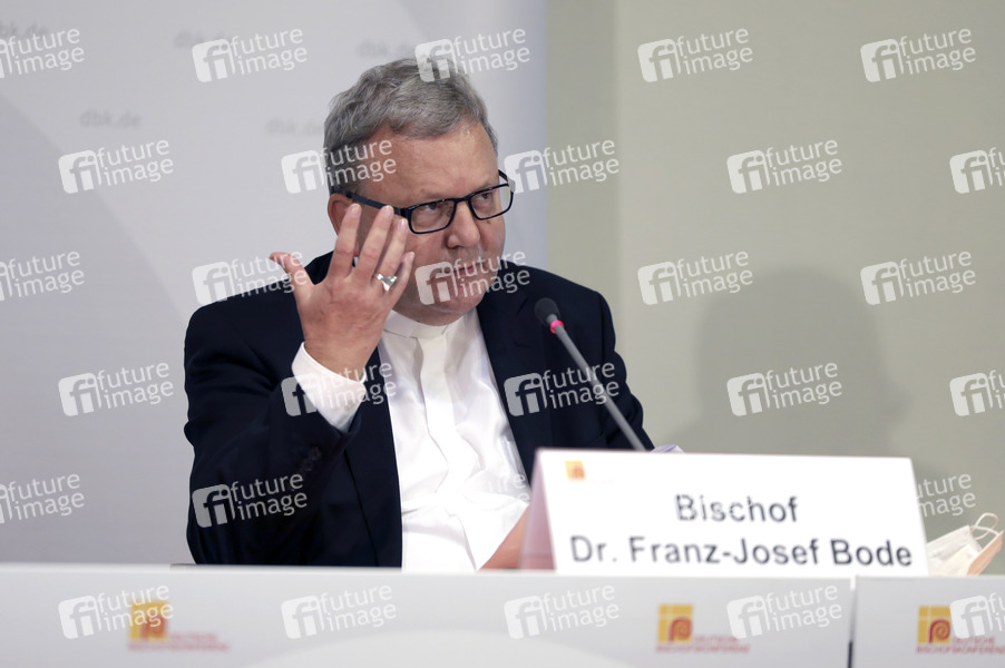 Dr. Franz-Josef Hermann Bode (stellvertretender Vorsitzender der Deutschen Bischofskonferenz, Bischof von Osnabrück, Vorsitzender Pastoralkommision) beim Pressegespräch zum Thema 'Corona - kirchliche Verantwortung und Anwaltschaft' am zweiten Tag der Herbst-Vollversammlung der Deutschen Bischofskonferenz im Dompfarrzentrum. Fulda, 23.09.2020