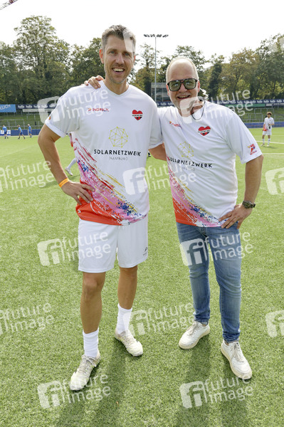 Fabian Boll und Marek Erhardt beim Benefiz-Fußballspiel 'Kicken mit Herz' 2024 zu Gunsten des Herzzentrums des UKE im Stadion des SC Victoria. Hamburg, 08.09.2024
