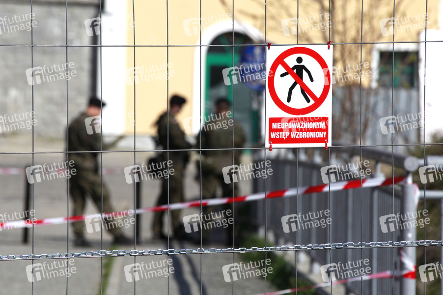 Polnische Soldaten am gesperrten Grenzübergang