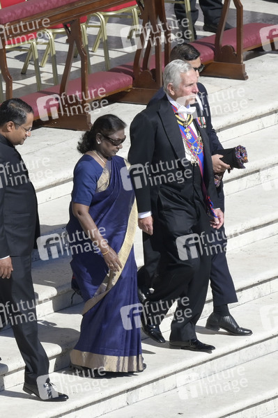 Draupadi Murmu bei der Trauermesse für den verstorbenen Papst Franziskus auf dem Petersplatz. Vatikanstadt, 26.04.2025