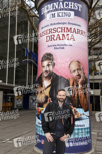 Michael Sandorov am Royal Filmpalast vor dem Plakat zum Kinofilm 'Kaiserschmarrndrama', in dem er eine kleine Rolle spielt. München, 07.12.2020