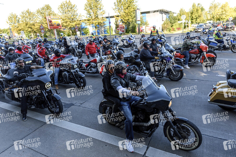 Biker verschiedener Motorradclub, darunter auch Mitglieder der Hells Angels, demonstrieren mit einer gemeinsamen Ausfahrt durch Berlin gegen das Kuttenverbot und die Einschränkung der Vereinsfreiheit. Berlin, 14.09.2019