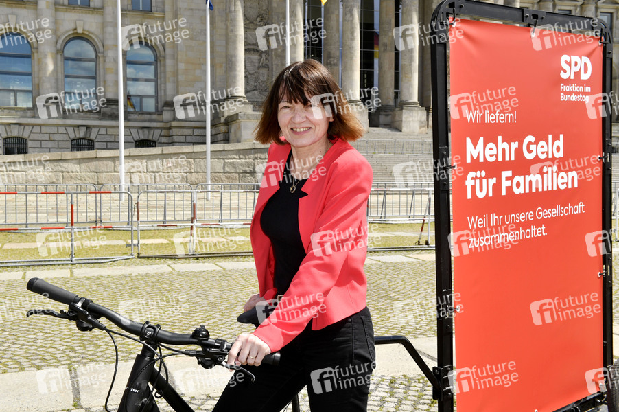 Ingrid Arndt-Brauer bei einer Aktion über die Bilanz der Arbeit der SPD-Bundestagsfraktion vor dem Reichstagsgebäude. Berlin, 20.05.2021