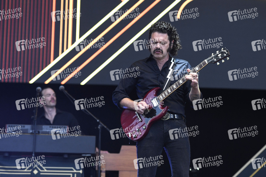 Daniel Haglund und Hakan Sörle von Mando Diao live auf dem Open R Festival 2024 in der Almased Arena. Uelzen, 16.08.2024
