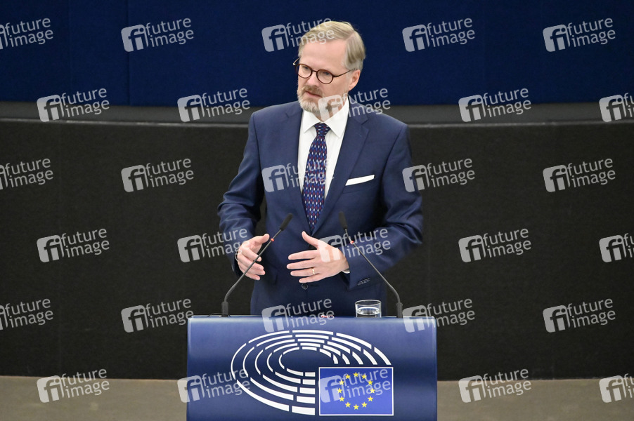 Petr Fiala präsentiert die Prioritäten der tschechischen EU-Ratspräsidentschaft im Plenarsaal des Europäischen Parlaments. Das Motto der tschechischen Ratspräsidentschaft lautet 'Europa als Aufgabe'. Das Motto unterstreicht die Notwendigkeit, die derzeitige EU-Politik im Lichte des russischen Angriffskrieges gegen die Ukraine neu zu bewerten. Straßburg, 06.07.2022