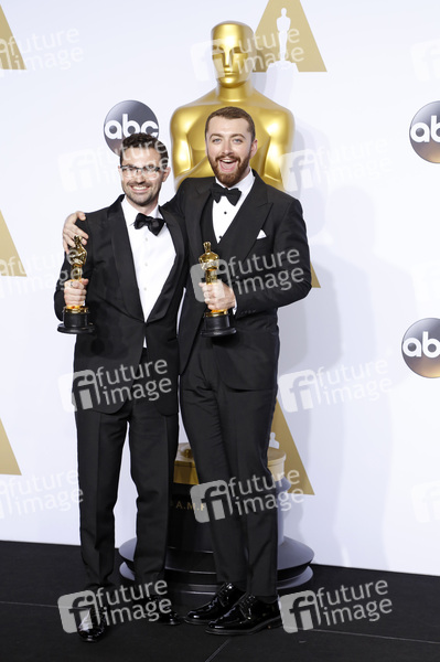 Jimmy Napes und Sam Smith (Bester Filmsong 'Writing’s on the Wall' aus 'James Bond 007: Spectre') im Presseraum der Oscar Verleihung 2016 / 88th Academy Awards im Loews Hollywood Hotel. Los Angeles, 28.02.2016