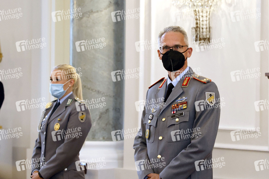 Brigadegeneral Jens Arlt bei der Verleihung des Verdienstkreuzes 1. Klasse an Brigadegeneral Jens Arlt im Schloss Bellevue. Berlin, 17.09.2021